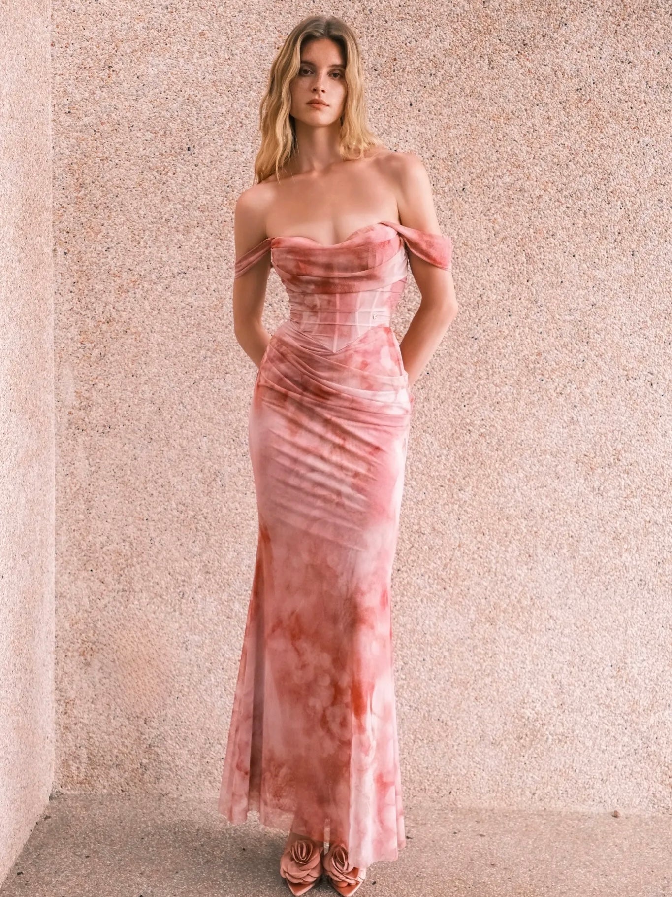 Ariel Off Shoulder Ombre Ruched Maxi Dress