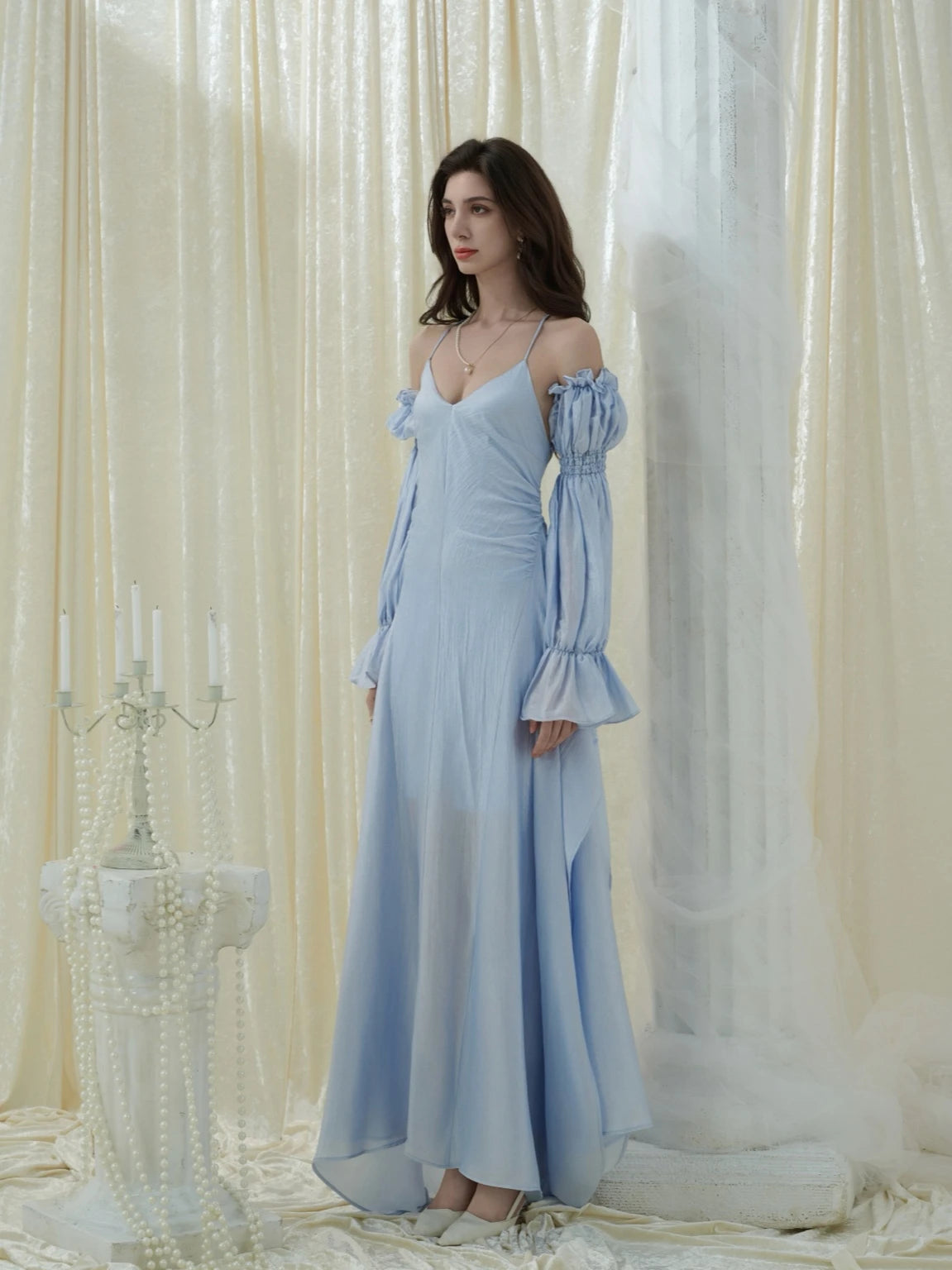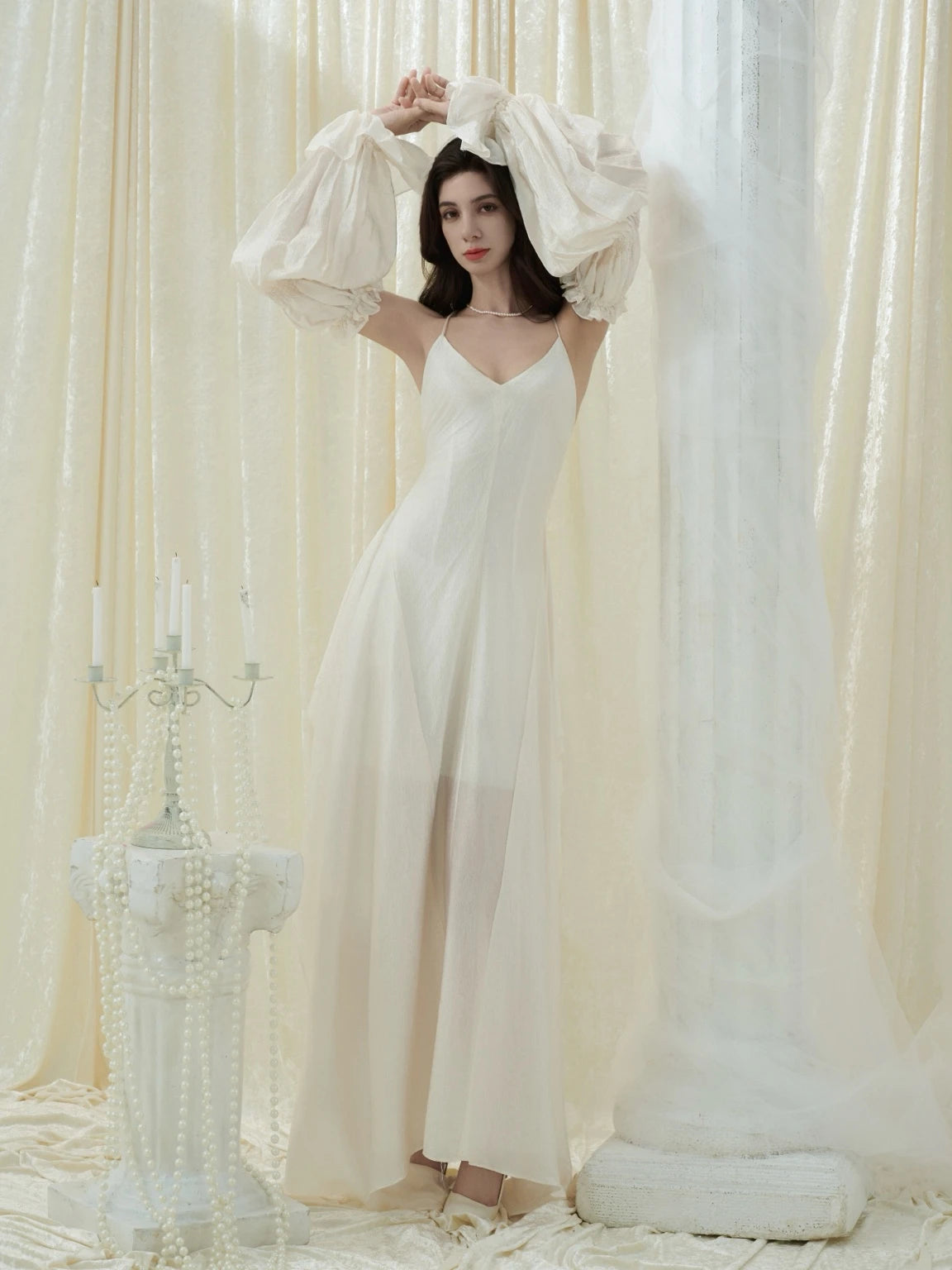 Crow Crew Backless Spaghetti Strap Dress with Detachable Puff Sleeves - PREORDER