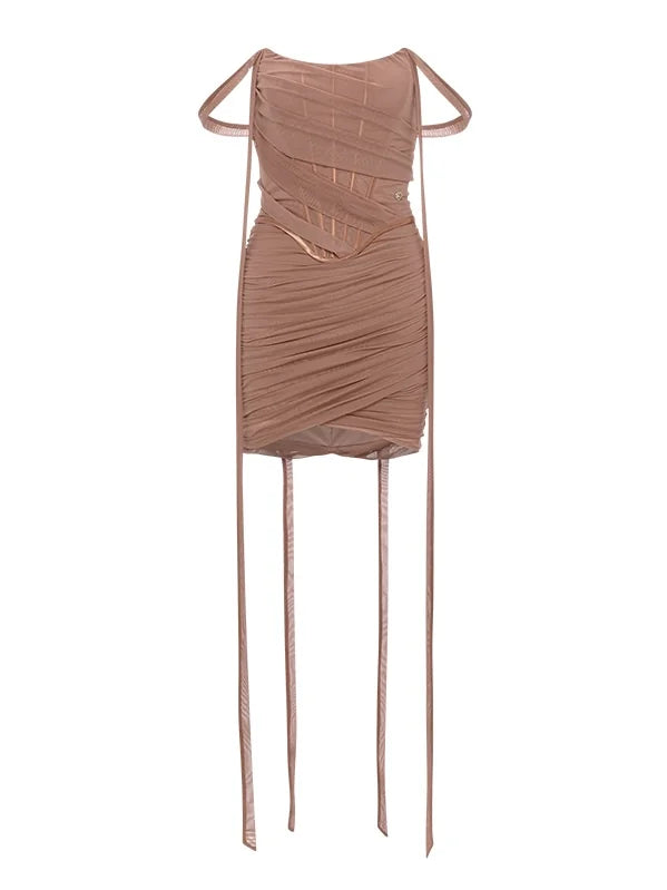 Nyree Mesh Ribbon Asymmetrical Dress